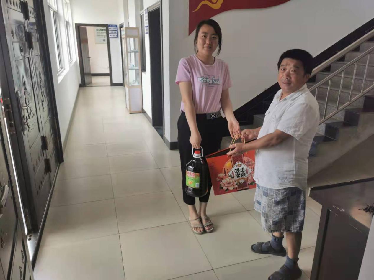 幫扶人和社區(qū)聯(lián)系人在走訪慰問中,每到一戶致以節(jié)日的問候與祝福,面對面、心貼心地進(jìn)行談心交流,了解他們的近期身體狀況、家庭變化以及詢問他們生活中需要解決的實(shí)際問題,認(rèn)真聽取他們的意見和建議,并送上食用油和月餅等節(jié)日慰問品,提醒大家中秋期間不聚集、少串門,做好疫情防控工作。