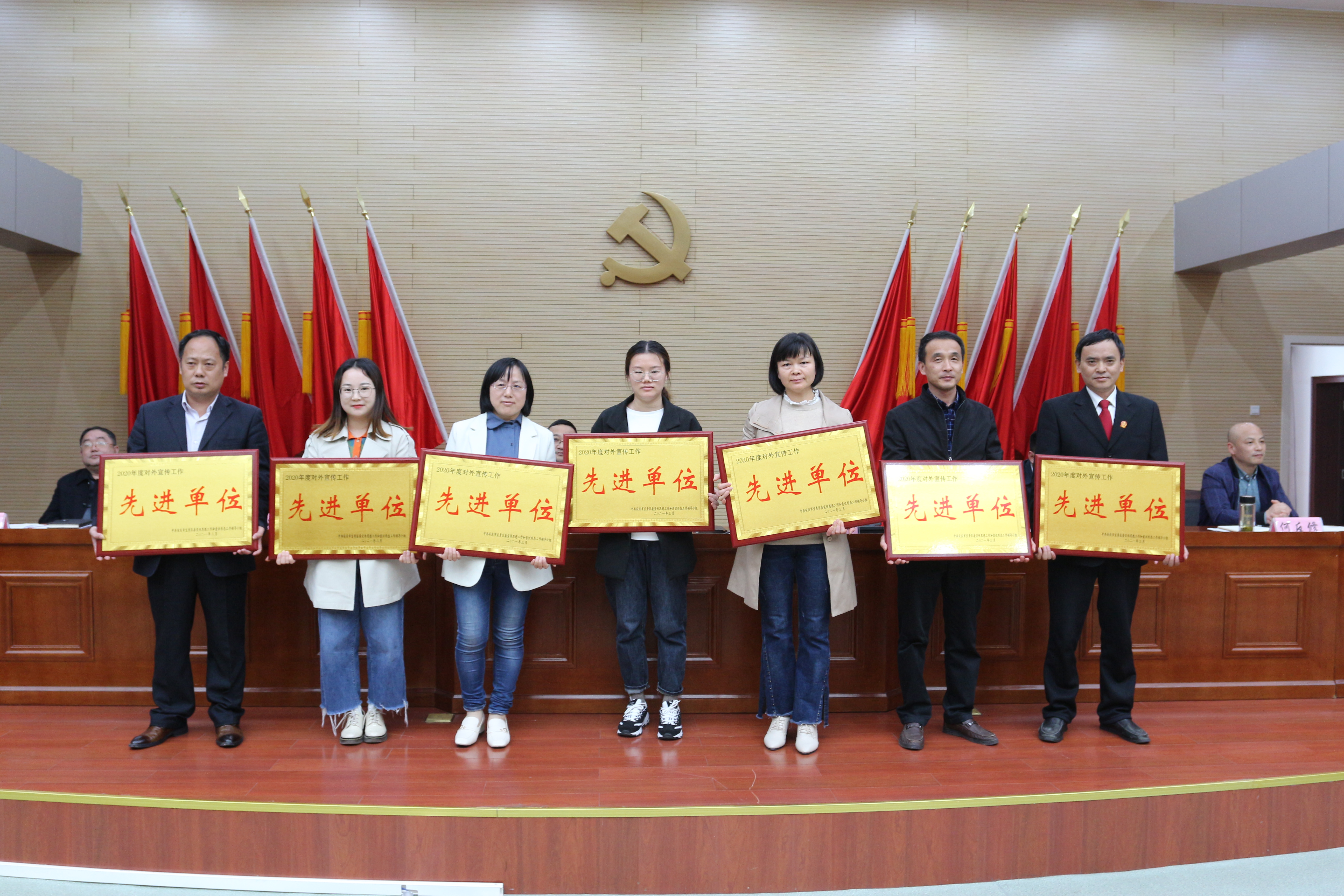 會議對理論武裝工作、落實意識形態責任制、對外宣傳工作先進單位和優秀通訊員、安慶好人以及全國文明村鎮、安徽省文明村鎮進行了表彰和頒獎。獲獎代表作了交流發言。