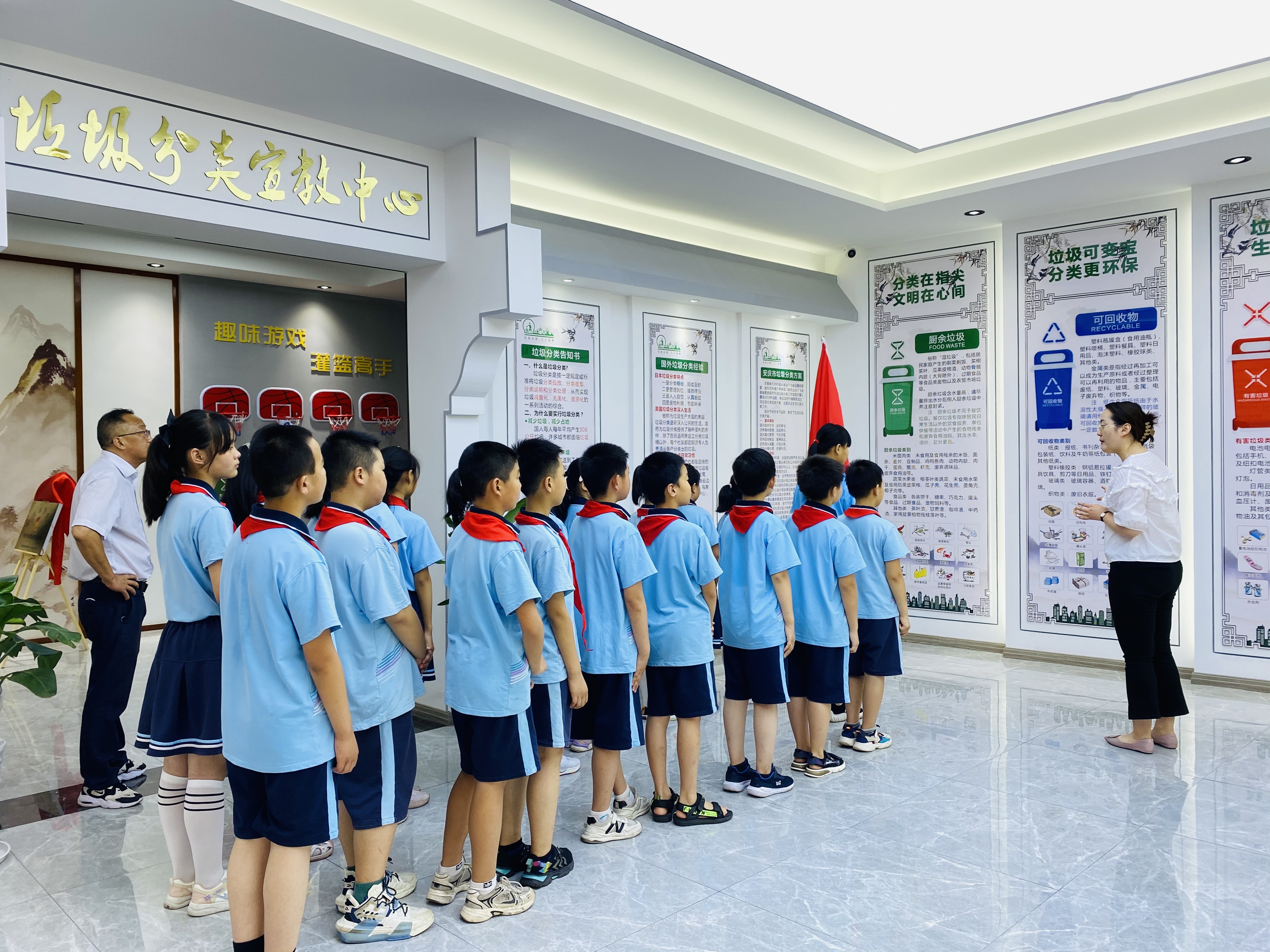 揭牌儀式結束后,安慶京環公司垃圾分類志愿者為少先隊員們生動闡述了垃圾分類的重要性,講解了垃圾分類知識、垃圾分類標識和垃圾分類應該注意的事項,現場還觀看了垃圾分類宣傳視頻、發放了宣傳手冊。最后,通過游戲互動,獎勵垃圾分類周邊小禮品,讓孩子們靈活運用剛學習到的垃圾分類知識,不僅讓孩子們對垃圾分類有了更深入的認識和實踐,還寓教于樂,切實提升了活動的趣味性和實用性。