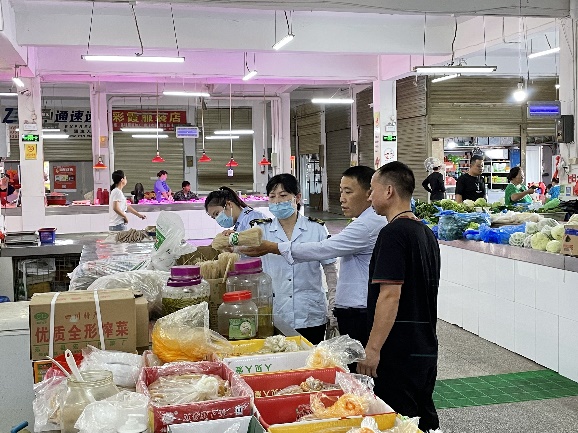 一是加強農貿市場文明誠信經營建設。先后對轄區12家農貿市場開展檢查和指導,重點檢查農貿市場內疫情防控措施落實、公平秤使用和檢定、經營戶證照、從業人員健康證和活禽宰殺設立隔離隔斷、索證索票等情況,現場督促亮證經營12戶、健康證臨期重新辦理10人、2家臨期食品下架,對10家經營戶銷售的預包裝食品及散裝食品進行全梳理,杜絕過期、三無食品。同時,開展2021年度“文明誠信經營戶”評選活動,為獲得稱號的14戶市場經營戶授牌。