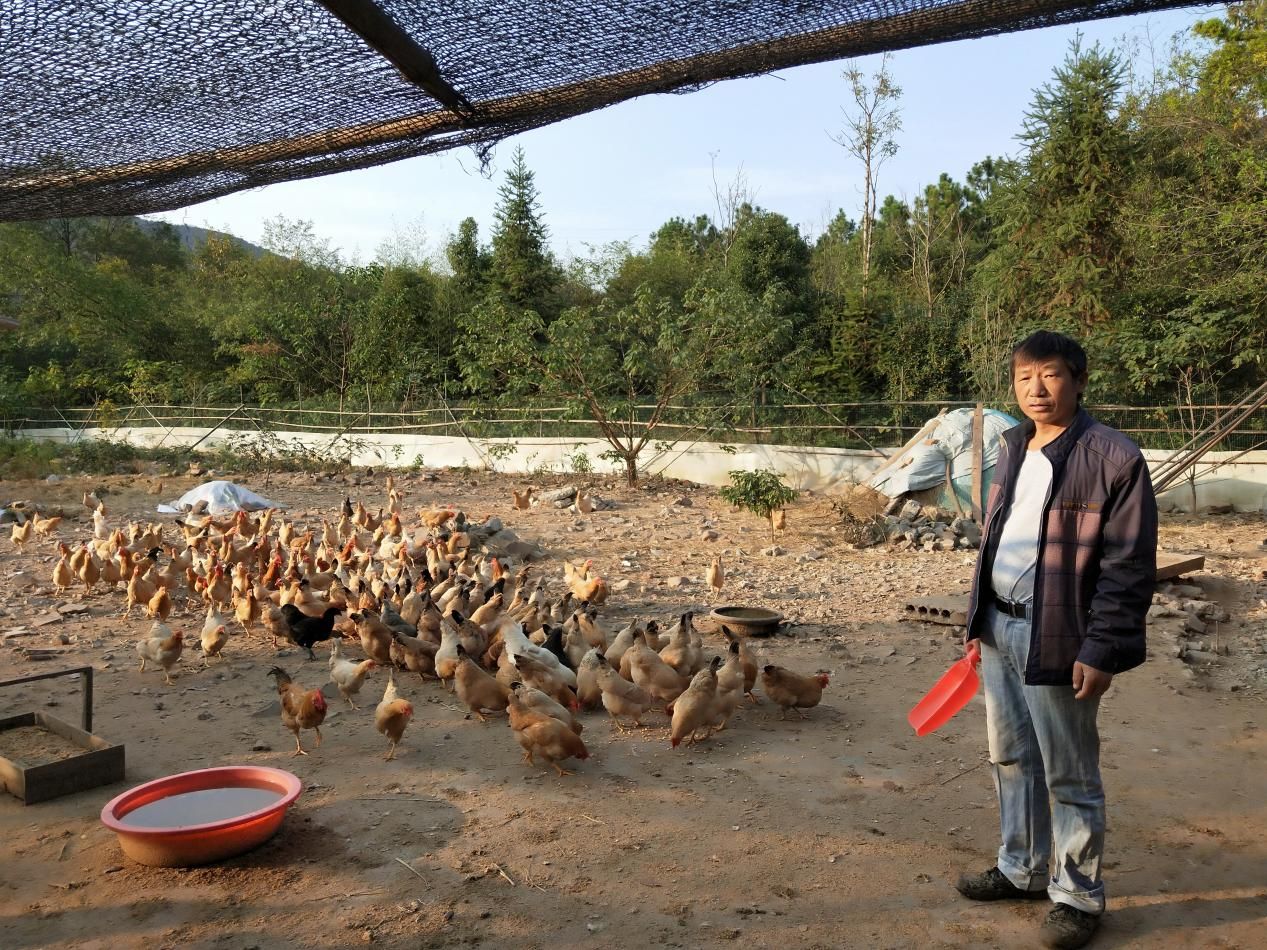 郁郁蔥蔥的橫山山場坐落于宜秀區大龍山鎮永安社區,一座雞棚在橫山山場腳下棚若影若現,與綠林相伴。當你走近時就會聽到此起彼伏的雞叫聲、狗吠聲,頓時讓這個寧靜山林變得熱鬧非凡。