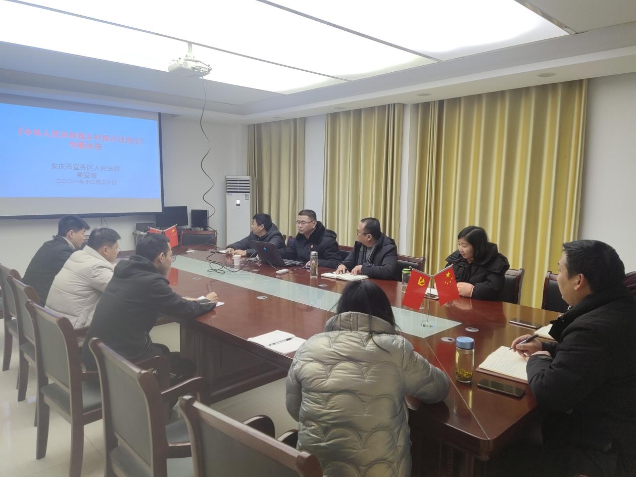 為貫徹落實鄉村振興戰略,加強法治鄉村建設,進一步增強基層群眾的法治觀念,2021年12月30日晚,螺山村邀請楊橋法庭庭長吳宜俊到村給駐村工作隊及村兩委干部講解“鄉村振興促進法”相關法律知識。