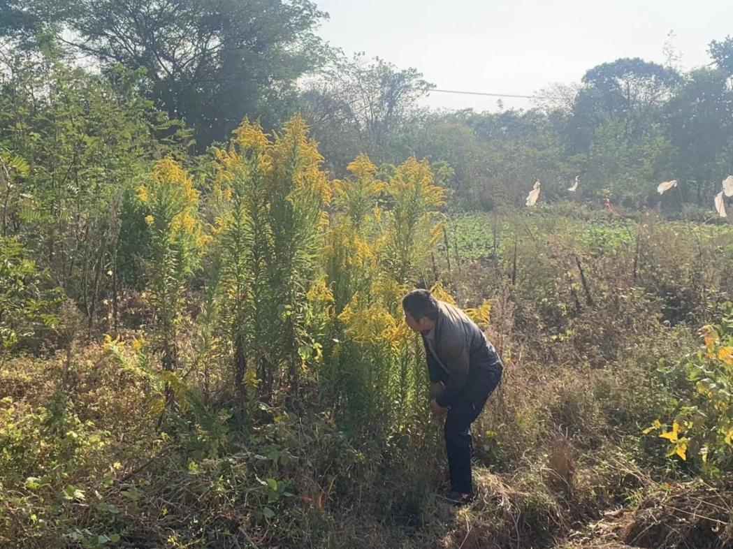 近日,官兵八組村民偶然發現幾株之前從未見過的“蠻好看”的黃花植物。由于之前聽過一些關于“入侵物種”的知識宣傳,出于警覺便拍照發到官兵村群里詢問,有村民認出此植物系“加拿大一枝黃花”,屬于有害入侵物種。官兵村兩委得知消息后,高度重視,第一時間去現場核實,確系“一枝黃花”。