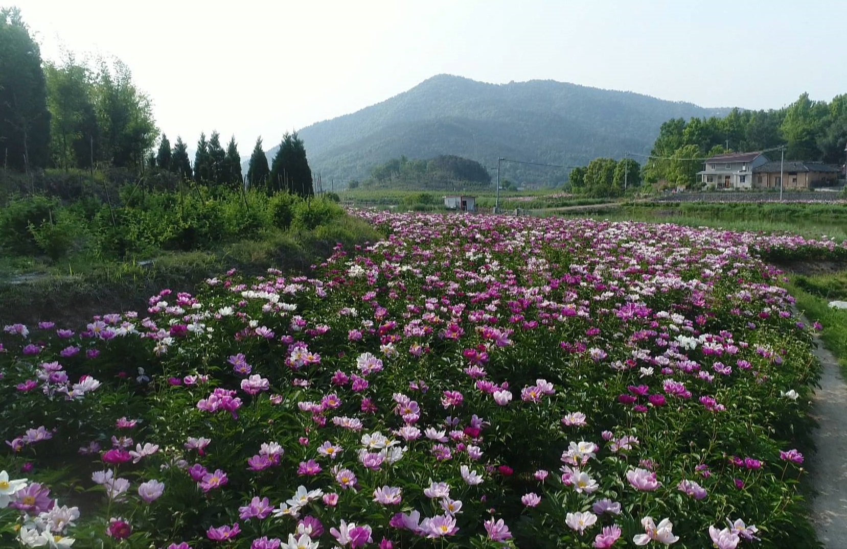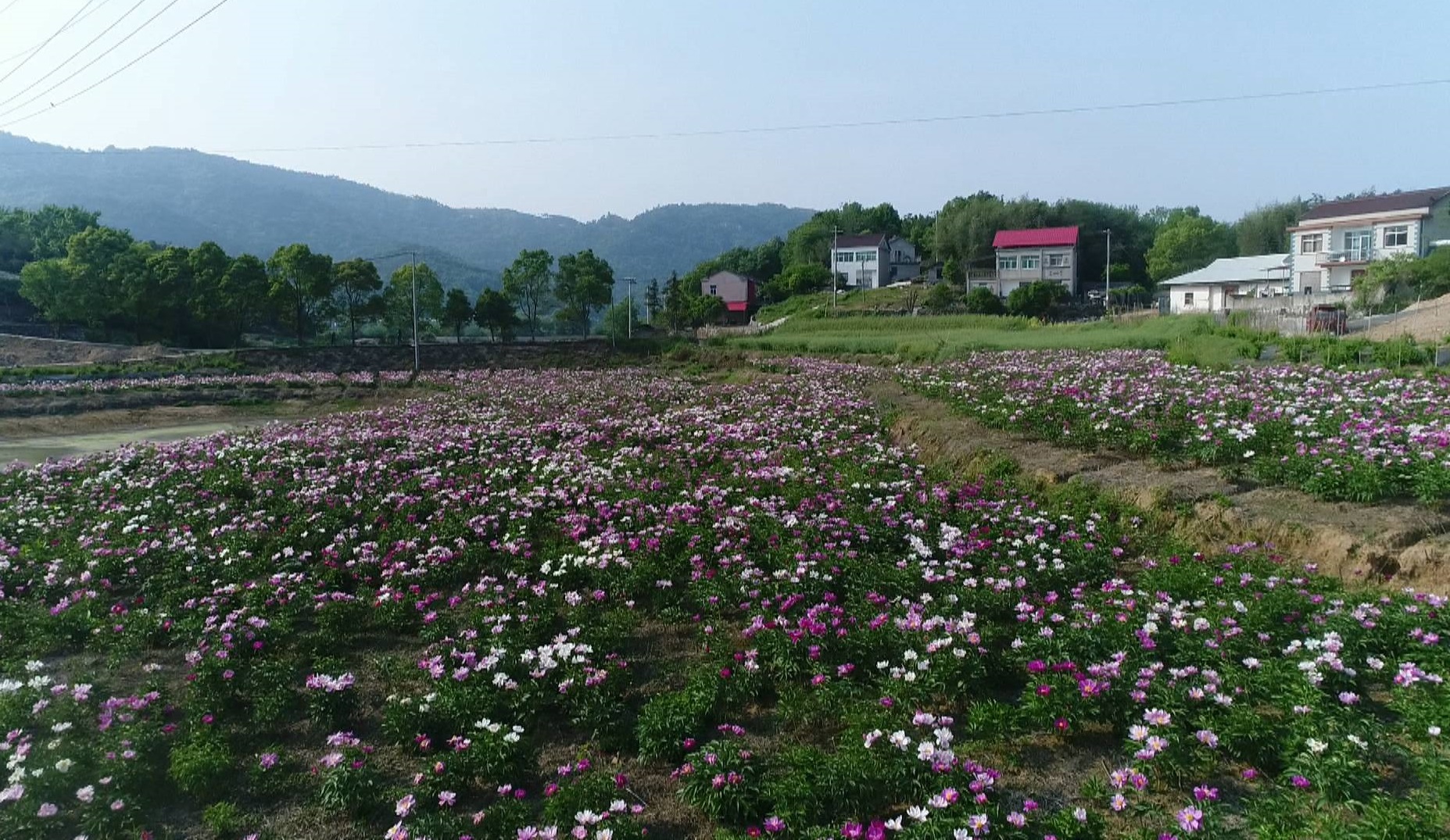 最是一年花色好,芍藥花開惹人醉。在安慶市宜秀區楊橋鎮螺山村,連片芍藥競相綻放,遠遠望去,層疊有致,將村莊與田野裝扮得分外迷人。