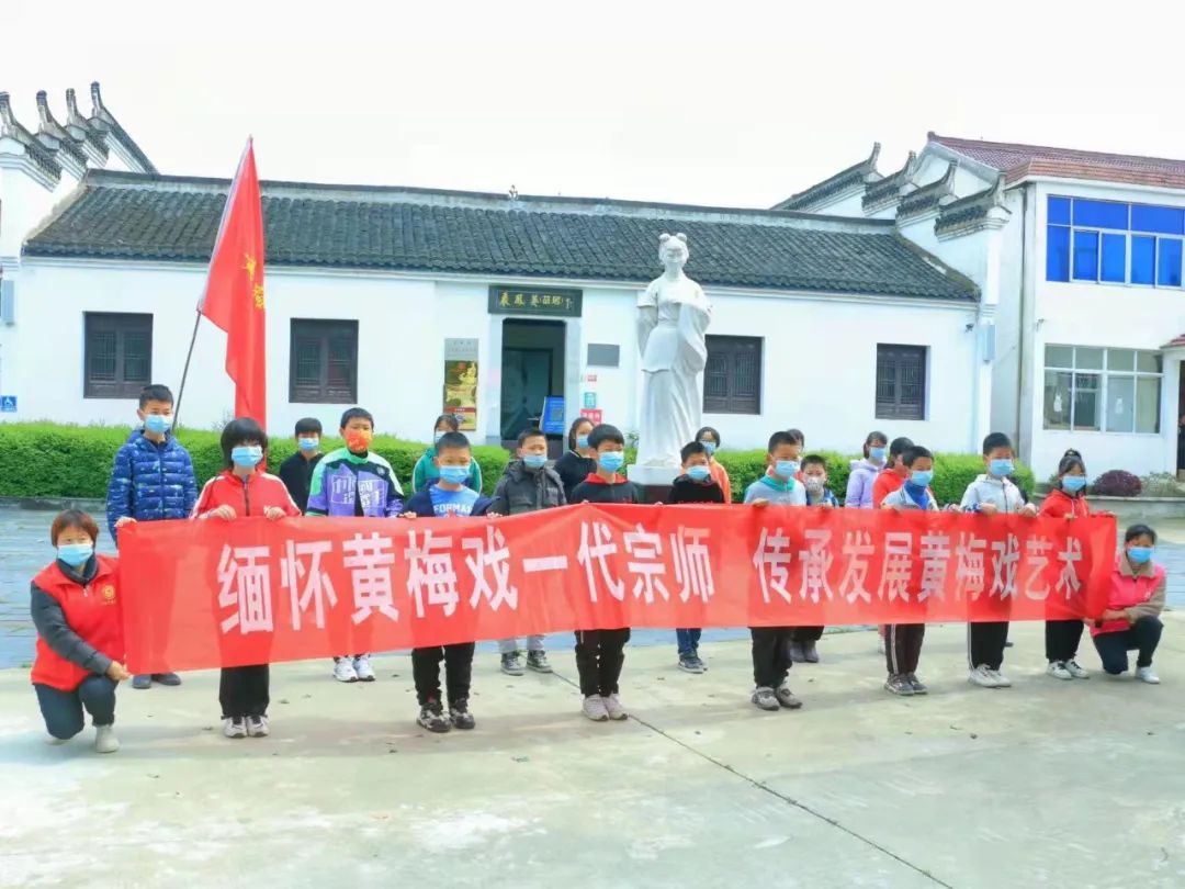 當天上午,黃梅小學學生們和志愿者們來到嚴鳳英故居,開展清明祭祀活動。在嚴鳳英大師雕像前,全體師生整齊列隊、肅立,逐一獻上菊花,寄托哀思。故居講解員嚴老為大家講述大師的生平事跡及對黃梅戲藝術做出的貢獻和突出成就。全體學生在大師雕像前鞠躬默哀,表達著對大師的敬仰和緬懷之情。