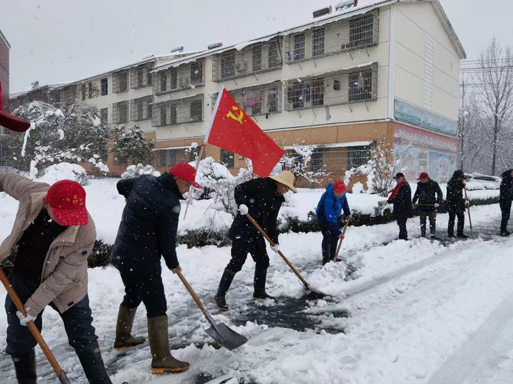 2月6日晚,安慶突降大雪,宜秀區內多條道路出現積雪和道路結冰現象,給群眾生產生活帶來較大影響。為確保市民及群眾出行安全,宜秀區委區政府深入貫徹落實省委會議精神,踐行“一改、兩為、五做到”,高位推動,強力推進,第一時間部署,成立100多支黨員先鋒隊,充分發揮基層黨組織戰斗堡壘作用和黨員的先鋒模范作用,讓黨旗在基層一線高高飄揚,讓黨徽在一線閃閃發亮。