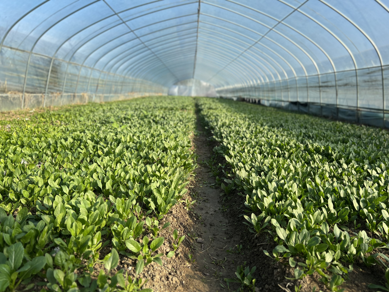 棚外寒風(fēng)刺骨,棚內(nèi)春意盎然。走進(jìn)大棚,清香的泥土氣息撲面而來,大片的綠葉生機(jī)勃勃,在陽光下亦是閃閃發(fā)光,惹人喜愛。2022年,為進(jìn)一步轉(zhuǎn)變農(nóng)業(yè)生產(chǎn)方式,調(diào)整農(nóng)業(yè)種植結(jié)構(gòu),提高土地的產(chǎn)出效益,帶動更多農(nóng)民增收致富,白澤社區(qū)“黨支部+合作社+土地流轉(zhuǎn)”模式,共流轉(zhuǎn)土地15畝,建造8個蔬菜大棚,承包給優(yōu)質(zhì)農(nóng)戶,種植應(yīng)季蔬菜,用科技化、精準(zhǔn)化的田園管理模式,進(jìn)一步提高蔬菜產(chǎn)量,帶動周邊農(nóng)戶致富增收。