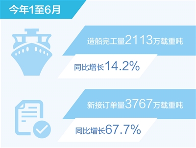 今年上半年 全國造船完工量同比增14.2%(新數(shù)據(jù) 新看點) 新接訂單量同比增67.7%