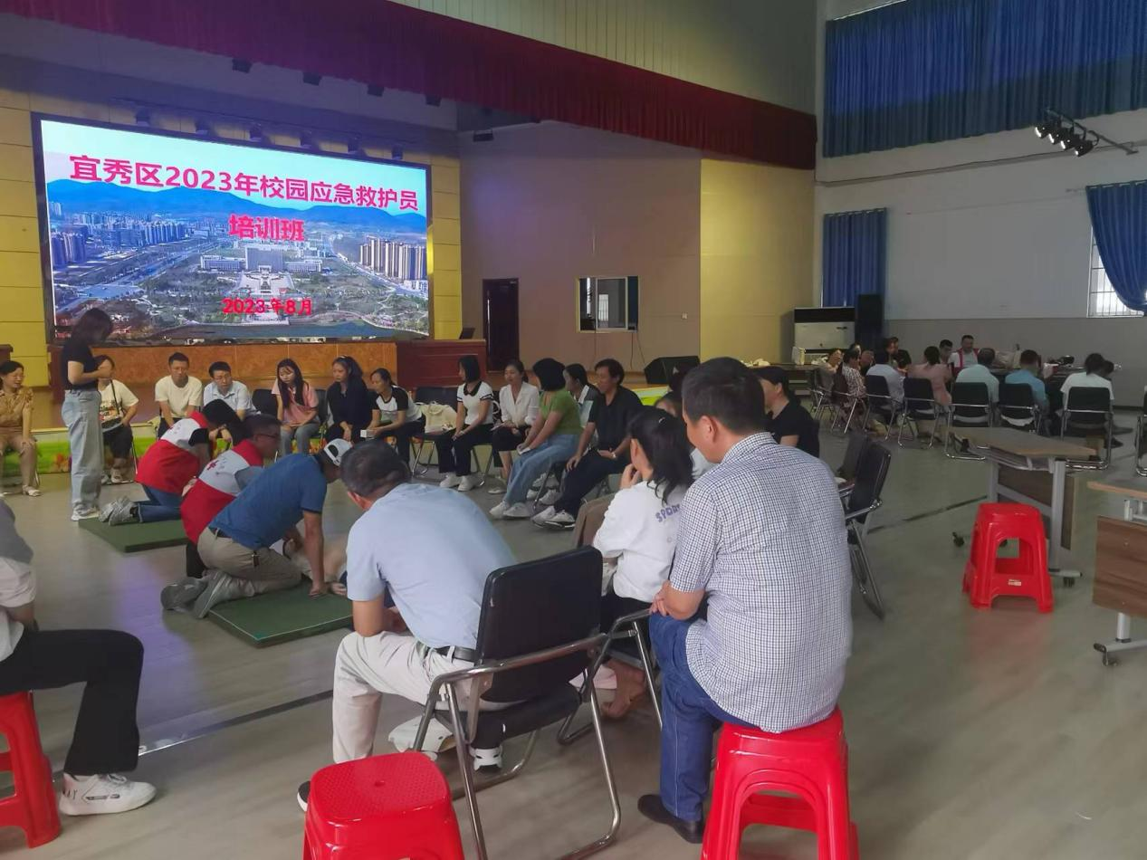 活動一:開展校園應急救護員培訓活動。8月29日,宜秀區紅十字會聯合教體局舉辦2023年校園應急救護員培訓班,對轄區各中小學、幼兒園50余名教職員工進行理論和實操培訓。通過培訓,讓參訓學員領會掌握了心肺復蘇、外傷出血及骨折固定包扎處理等各項急救技能的基本要領,并順利通過了實操考核,獲得了紅十字救護員證,為做好校園安全管理工作打下了堅實的基礎。