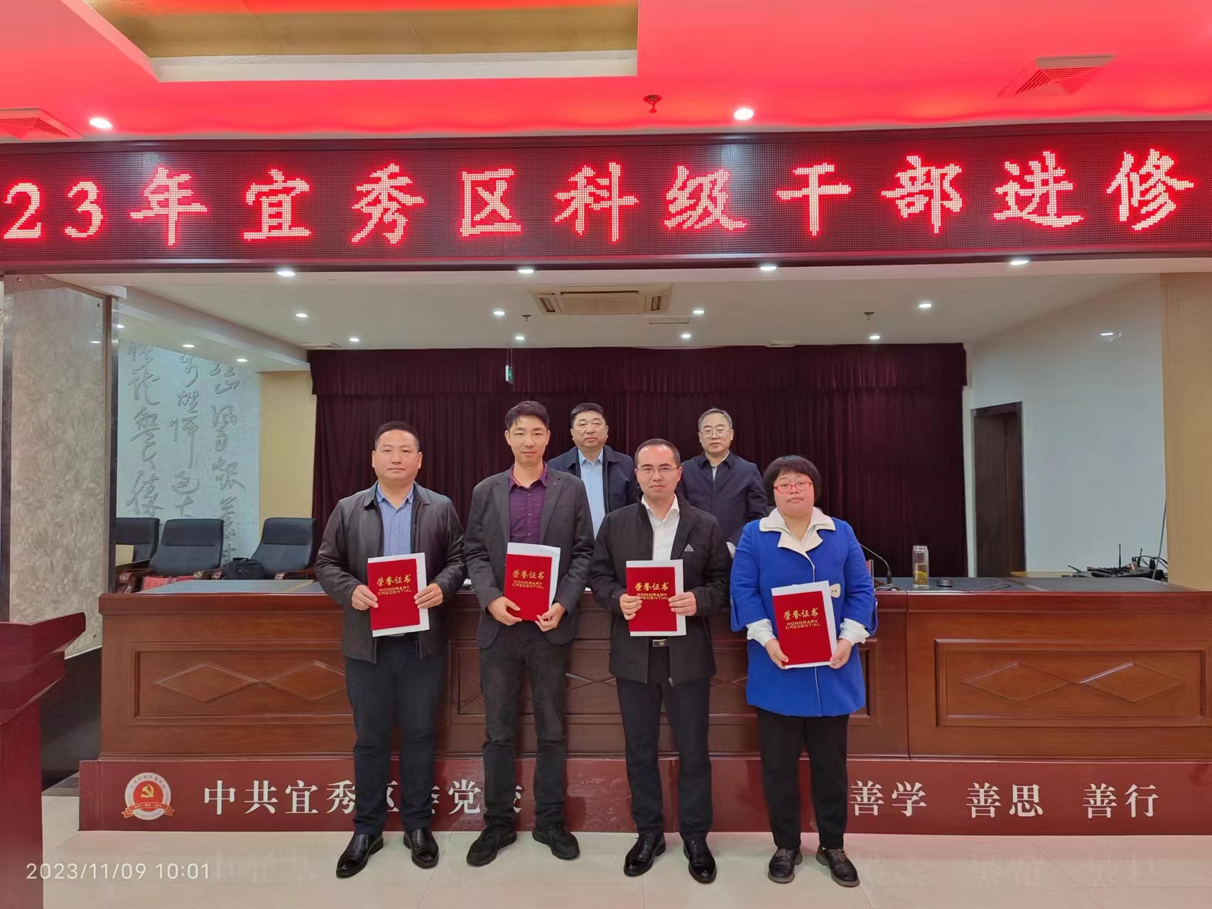 11月9日,宜秀區2023年科級干部進修班在學苑大廈一樓教室舉行結業儀式。區委組織部常務副部長出席結業儀式并講話。區委黨校常務副校長主持結業儀式。
