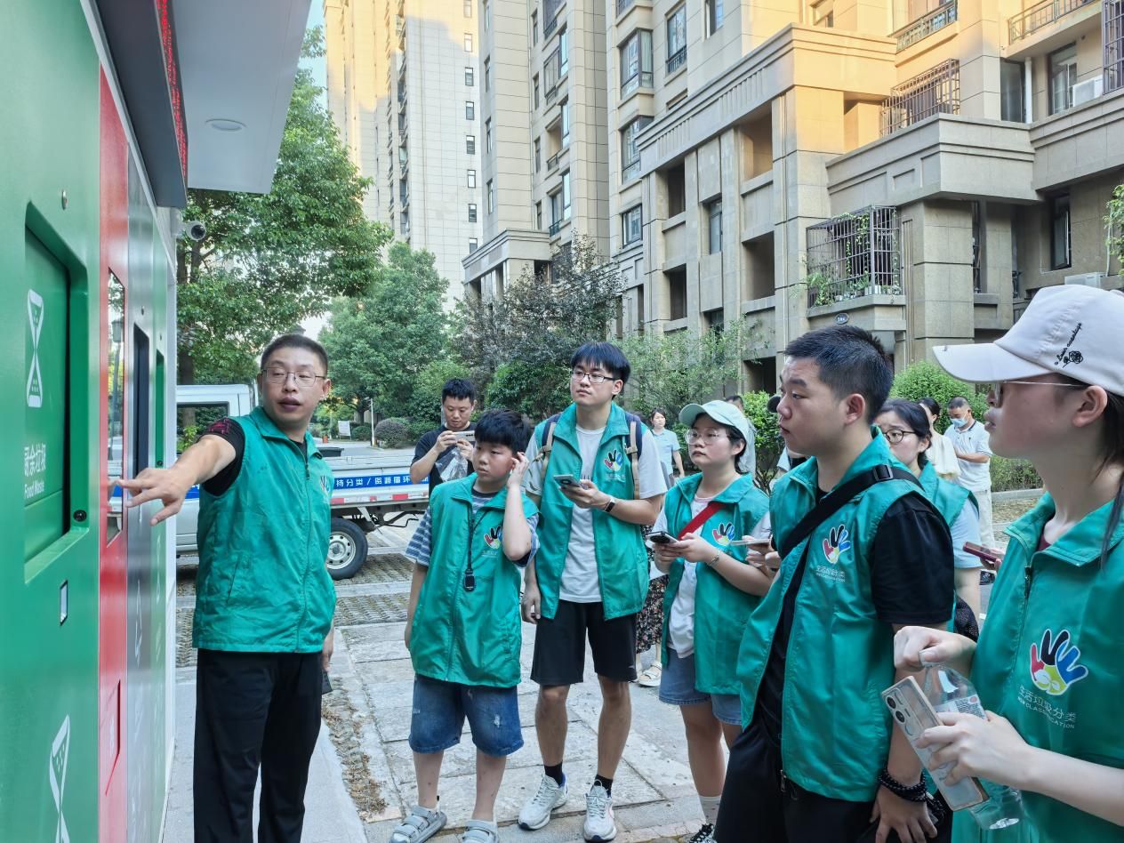 投放高峰時段,志愿者全程“站桶值守”,現(xiàn)場開袋檢查、面對面指導(dǎo)分類,既降低保潔管理成本,又顯著提升分類準確率;同時,徹底解決垃圾全天候露天堆放帶來的異味、污染問題,大幅改善社區(qū)環(huán)境。此外,太平村格外注重投放點的人性化設(shè)計:每個點位均配套便民洗手池(方便居民破袋后清潔)、遮雨棚與照明燈(保障雨天、夜間投放安全),還引入智能噴淋除臭裝置,從源頭消除居民顧慮、化解“鄰避效應(yīng)”,讓垃圾分類充滿管理溫度。